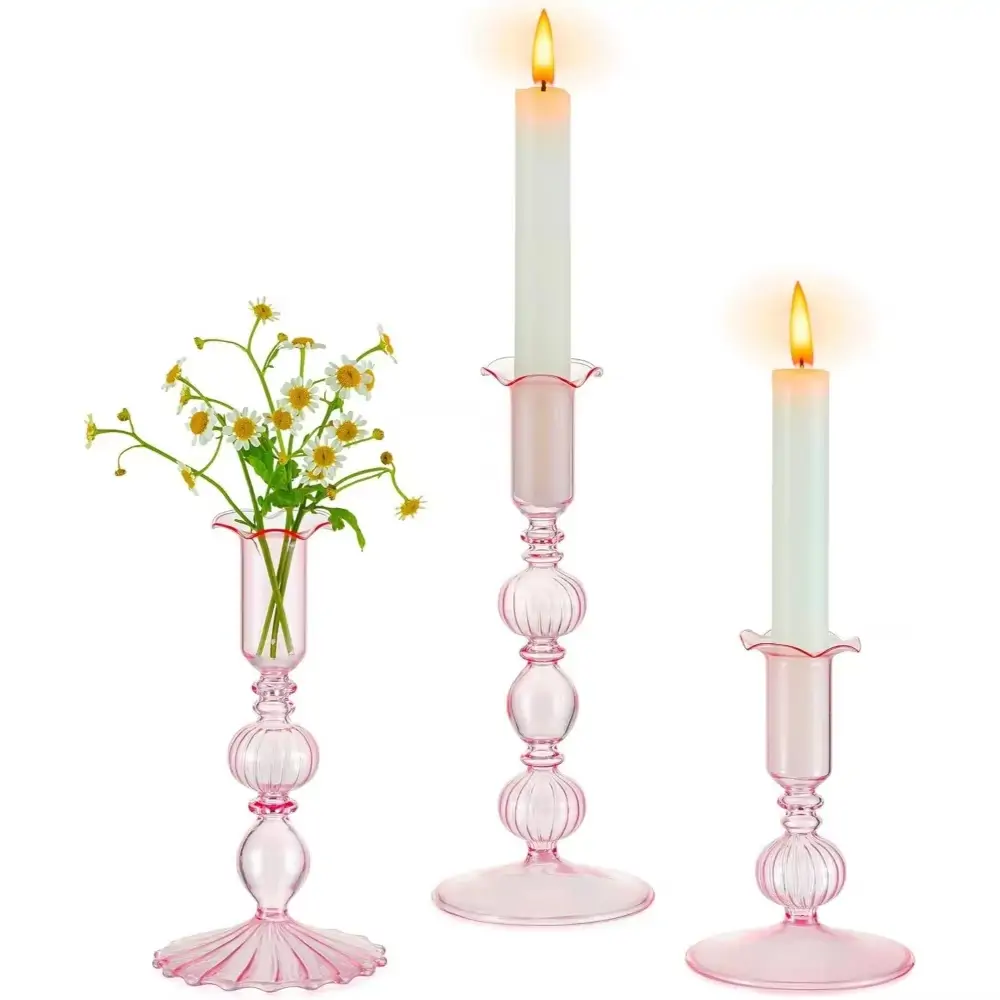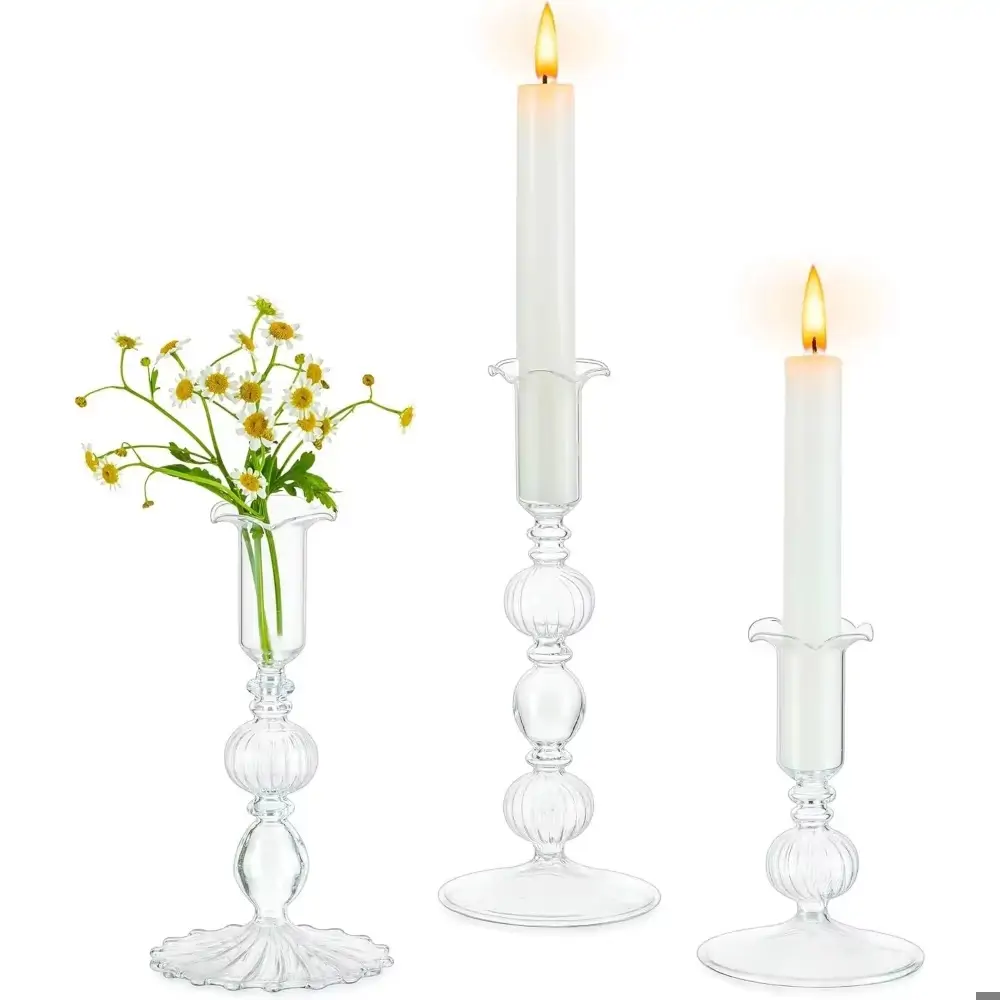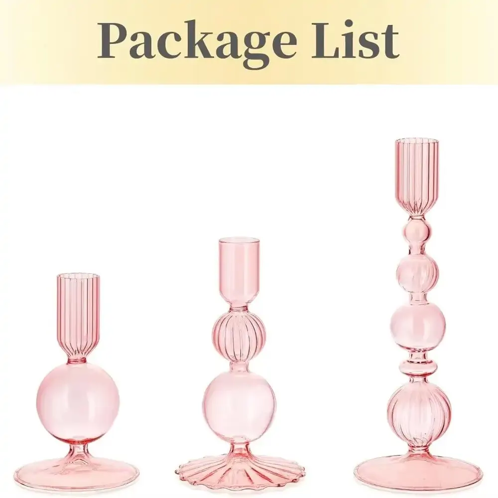 طقم 3 حوامل شموع زجاجية مدببة
